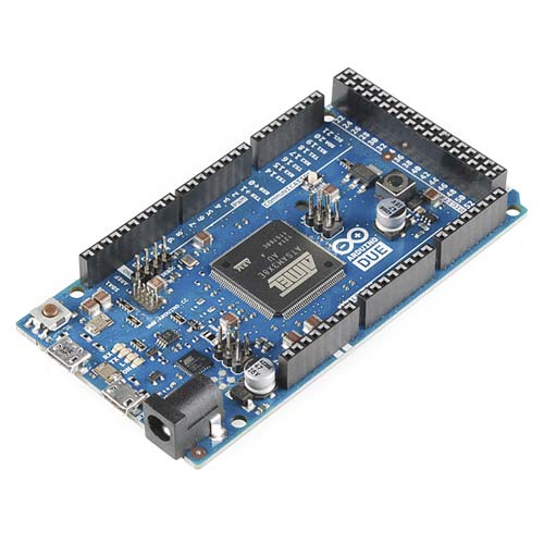 Плата микроконтроллера на базе процессора Atmel SAM3X8E ARM Cortex-M3 (описание). Это первая плата Arduino на основе 32-битного микроконтроллера с ARM ядром. На ней имеется 54 цифровых вход/выхода (из них 12 можно задействовать под выходы ШИМ), 12 аналоговых входов, 4 UARTа (аппаратных последовательных порта), a генератор тактовой частоты 84 МГц, связь по USB с поддержкой OTG, 2 ЦАП (цифро-аналоговых преобразователя), 2 TWI, разъем питания, разъем SPI, разъем JTAG, кнопка сброса и кнопка стирания.