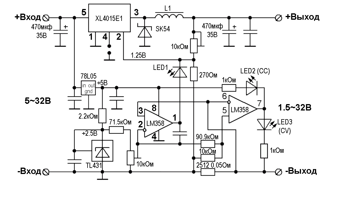 Принципиальная схема преобразователя HW-083 XL4015E1