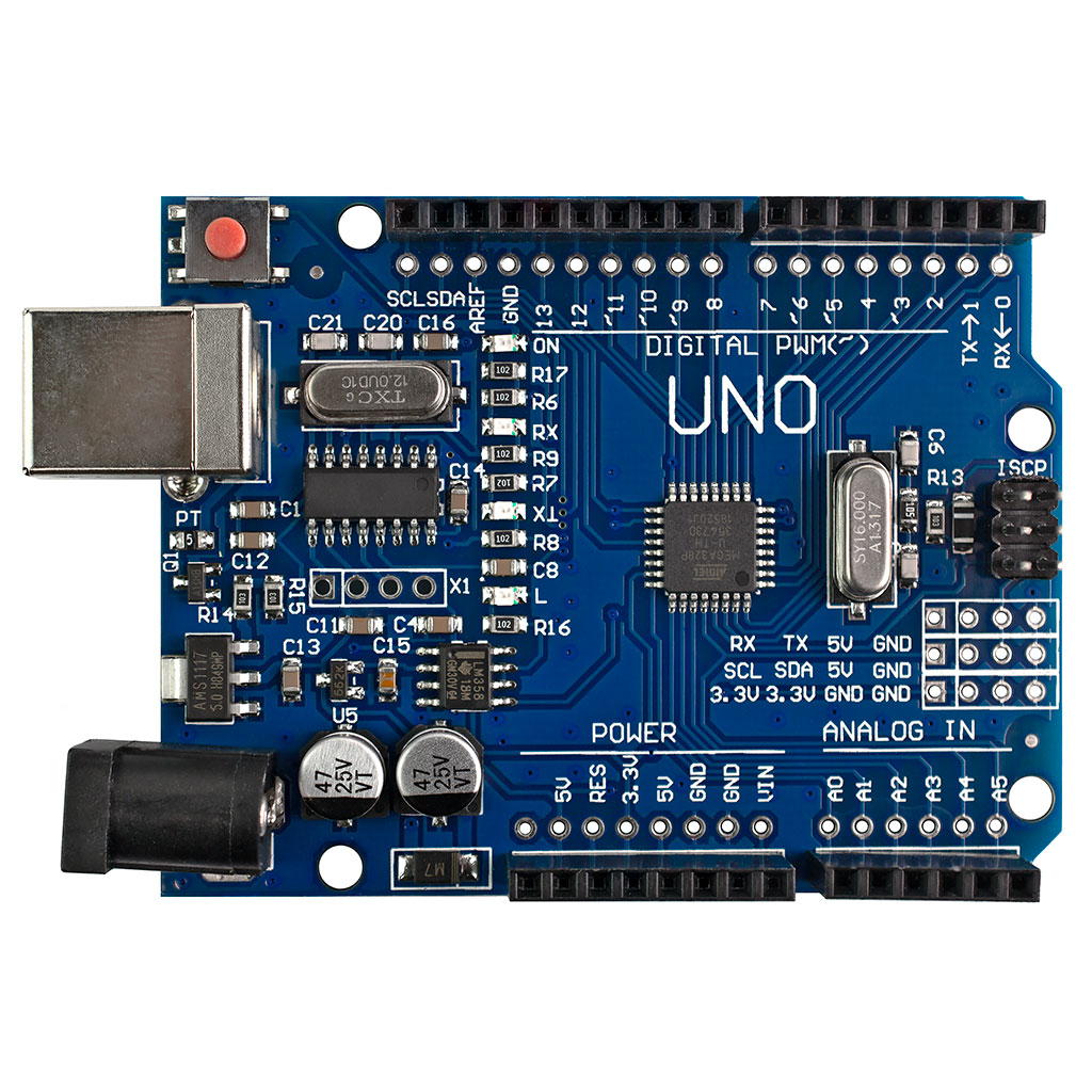 Arduino Uno R3 [Atmega 328P-AU+CH340G] по своим характеристикам ни чем не отличается от оригинала Arduino UNO R3. Для максимальной ценовой доступности при производстве данного микроконтроллера используются чипы серии CH340G производства Китай в замену чипам, производимым не в Китае.