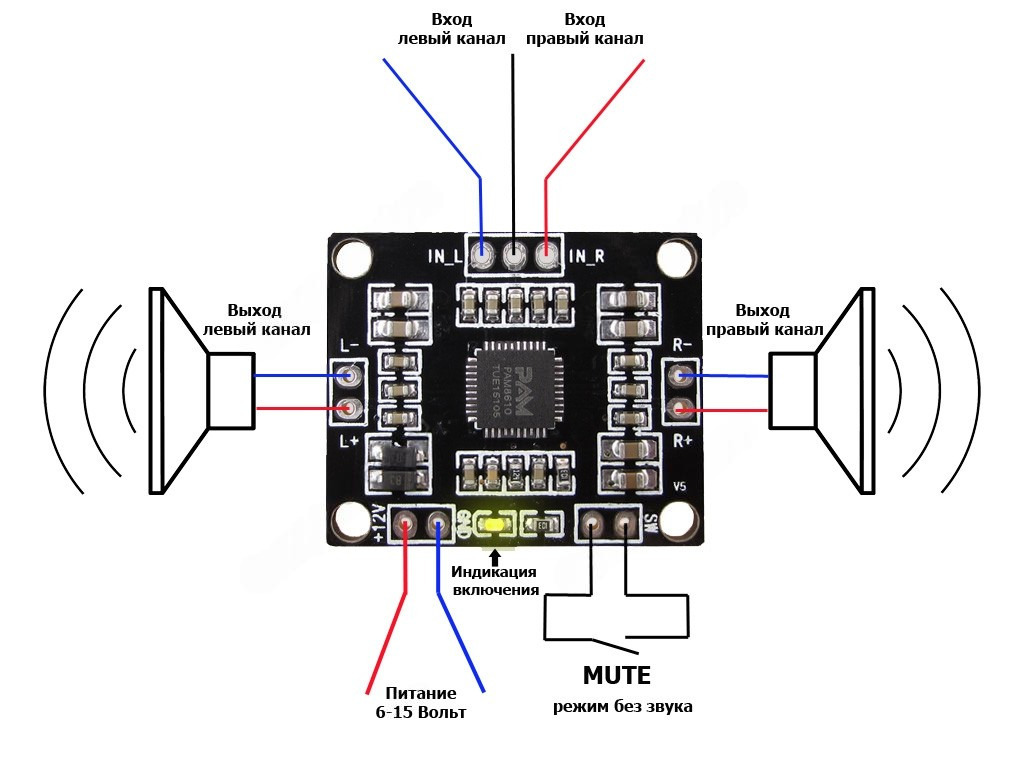Схема подключения аудио-усилителя PAM8610