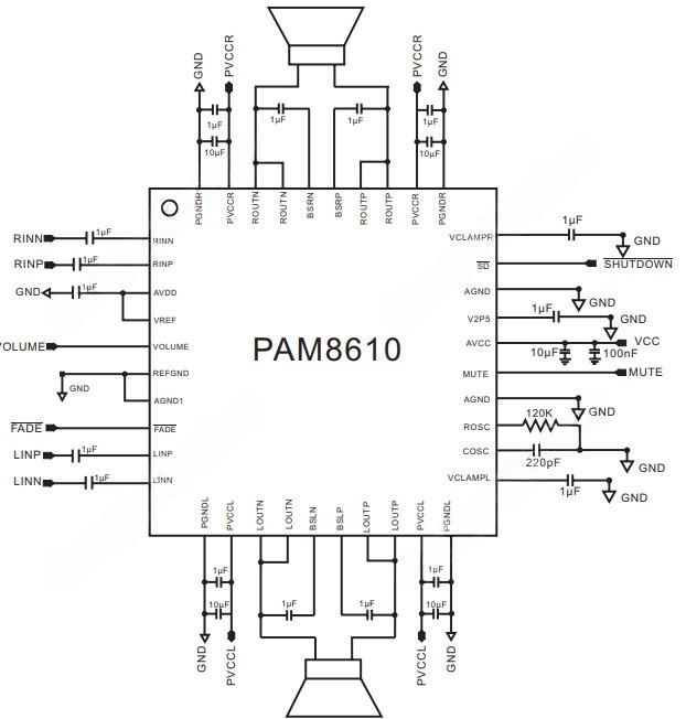 Минимальная схема обвязки PAM8610