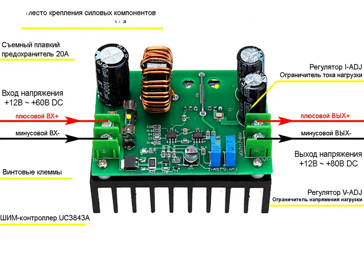 Выходной ток: до 12 А (если более 10 А, то требуется дополнительное охлаждение)