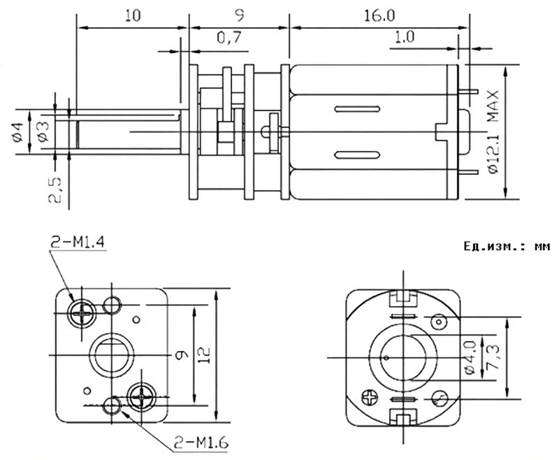 , 78 с нагрузкой. Крутящий момент: 247 г/см. Блокирующйи момент: 1188 г/см. Диаметр вала: 3мм. Длина вала: 9,3мм. Рвзмеры: 12х10х36мм. Вес: 10гр.
