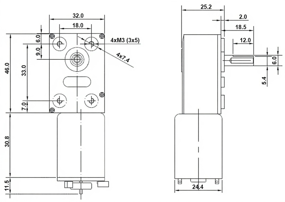 Редуктор: червячная передача, 1:37.3, 115 об/мин. Момент удержания: 0.22 кг/см. Энкодер на датчиках Холла, питание 3,3-5В. Модель: JGY-370B