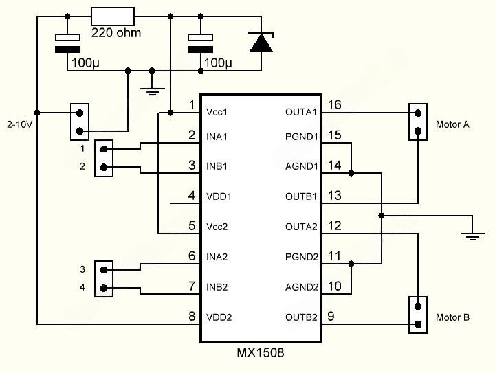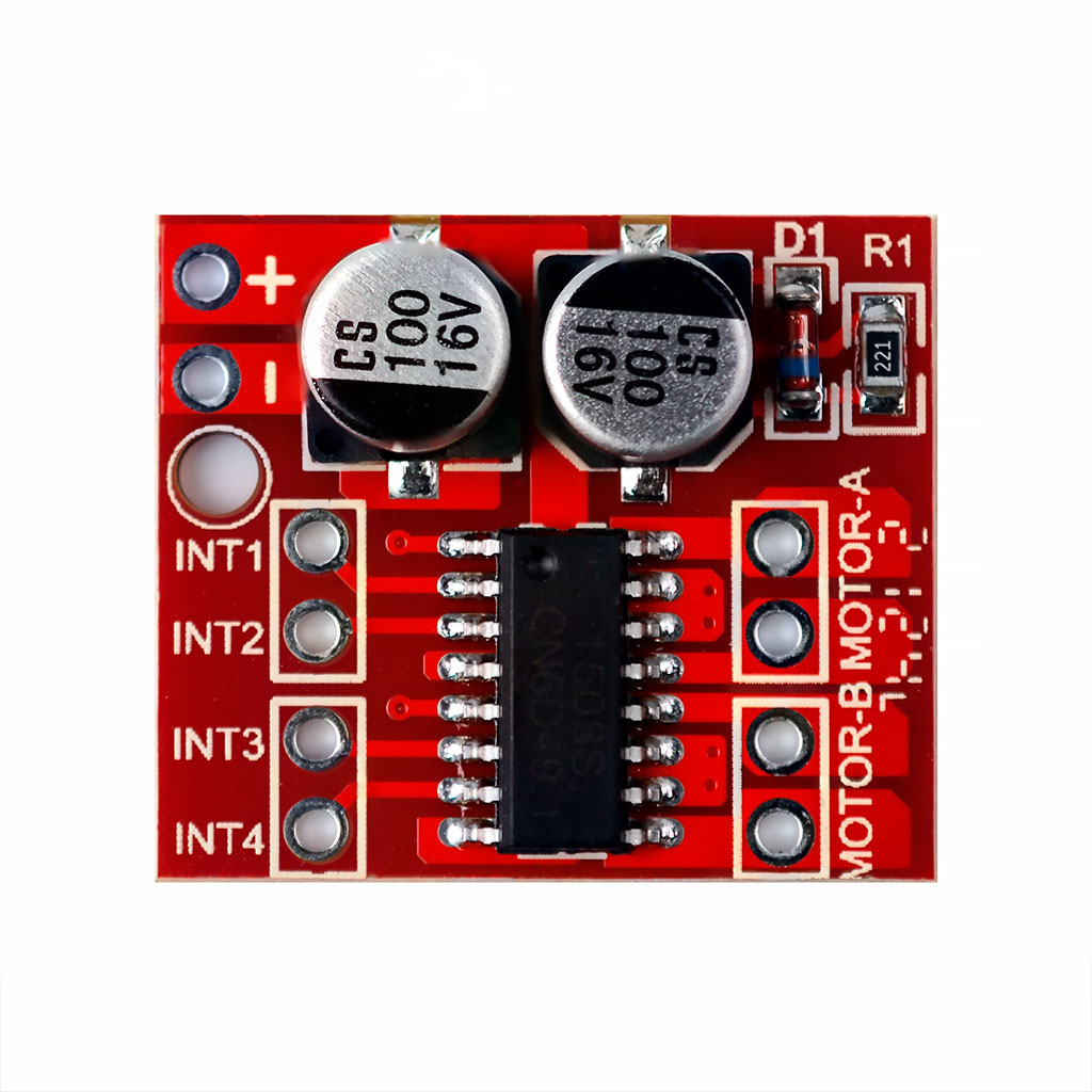 Драйвер двигателя постоянного тока MX1508 — это недорогой модуль драйвера двигателя, который может управлять шаговым двигателям и двигателями постоянного тока с номинальным током до 2 А. Микросхема MX1508 имеет два встроенных H-моста, построенные с использованием силовых полевых МОП-транзисторов N-канала и P-канала. Подходит для управления двигателями игрушечных автомобилей и других приложений.