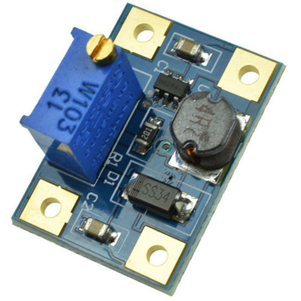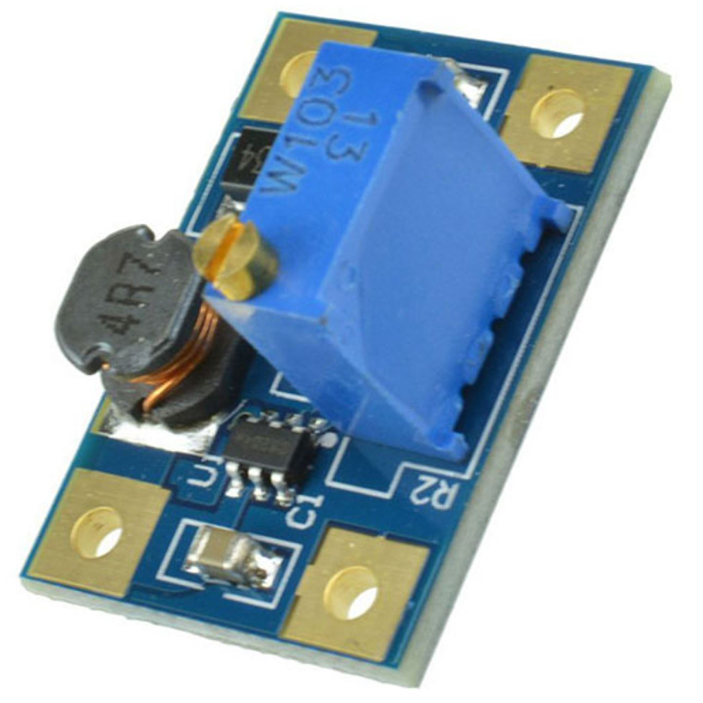 Плата преобразователя постоянного напряжения DC-DC, с возможностью повышения уровня выходного напряжения, построена на основе высокоэффективного однокристального слаботочного чипа SX1308, с интегрированным высокочастотным МОП-транзистором переключения и ШИМ-контроллером. Скорость преобразования энергии узлом цифровой широтно-импульсной модуляции SX1308 зафиксирована частотой 1.2МГц. Регулятор SX1308 позволяет оперировать с входным напряжением 2 ~ 24В, и выдавать на выходе стабильные 2 ~ 28В.