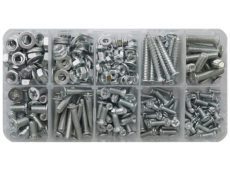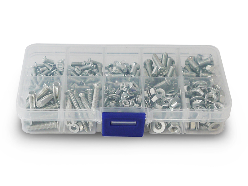 В набор входят самые популярные размеры винтов, гаек и саморезов,которые образуют между собой соединение для монтажа конструкций.
