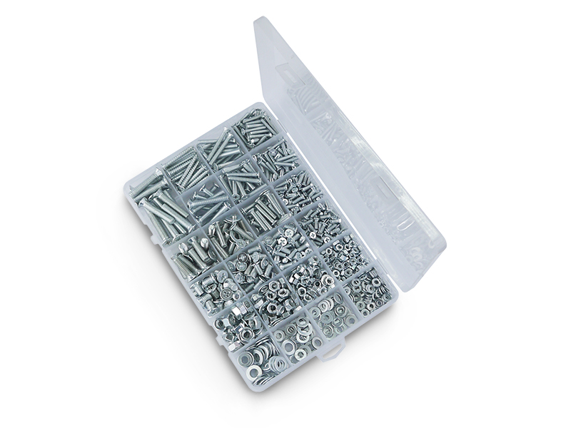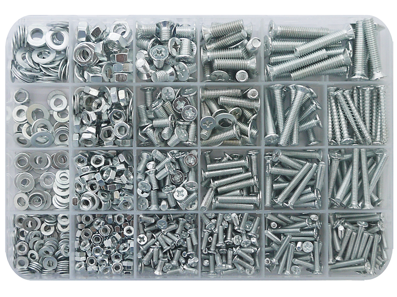 В набор входят самые популярные размеры винтов, гаек и саморезов,которые образуют между собой соединение для монтажа конструкций.