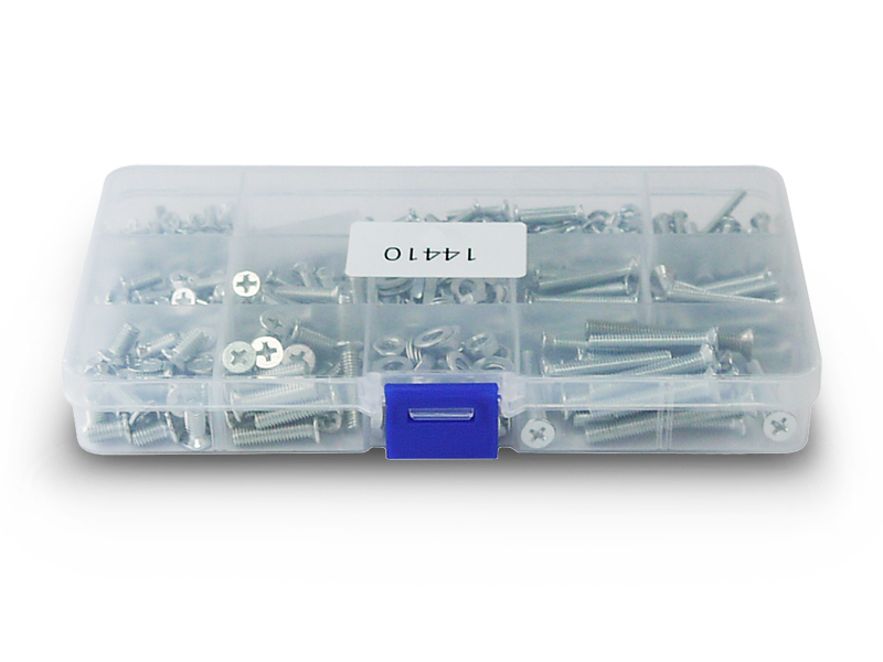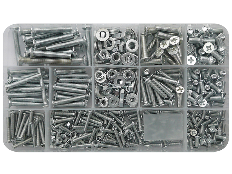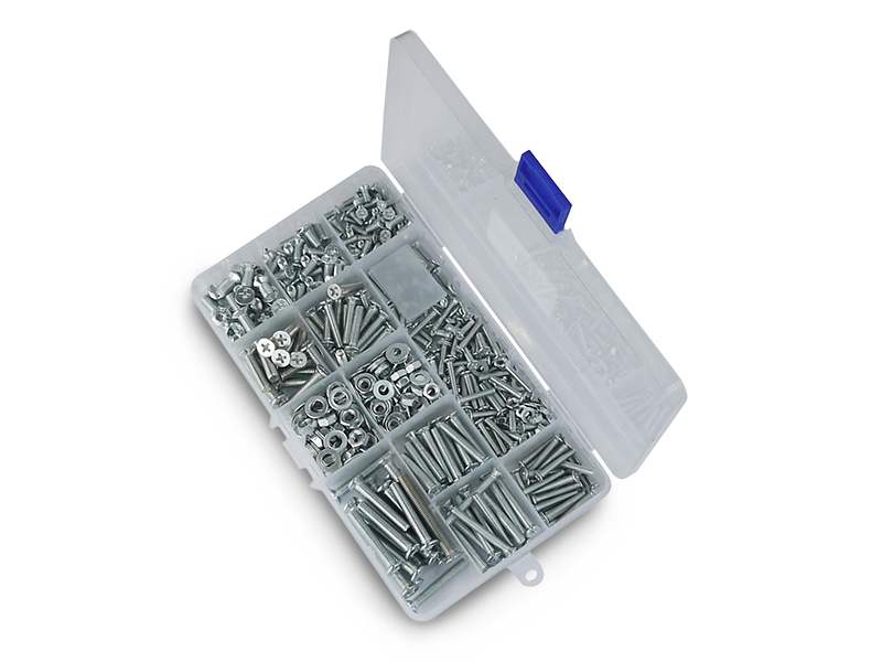 В набор входят самые популярные размеры винтов, гаек и саморезов,которые образуют между собой соединение для монтажа конструкций.