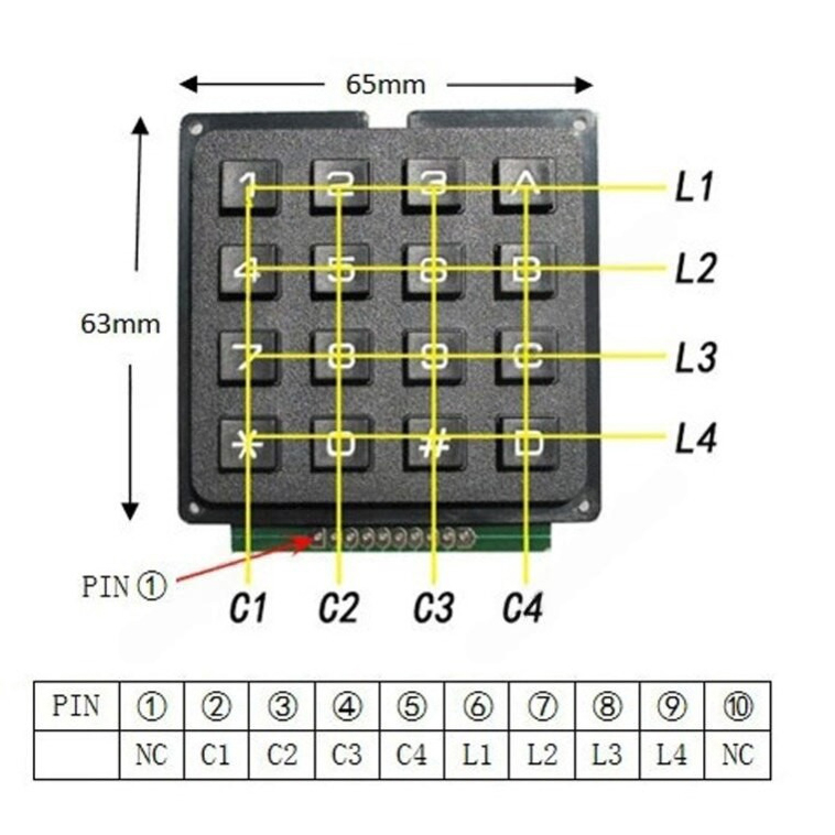 Матричная кнопочная клавиатура FZ0840. Имеет 16 тактильных кнопок, которые соединены в виде матрицы 4*4. Клавиатура имеет 10 выводов, из которых используются только 8.