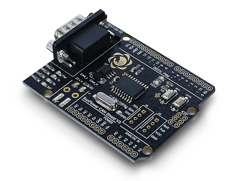 CAN-BUS модуль расширения Arduino/Freeduino. Скорость CAN шины до 1Мб/с, SPI интерфейс до 10МГц. Питание: 5-12В, размер: 78*53,5 мм.