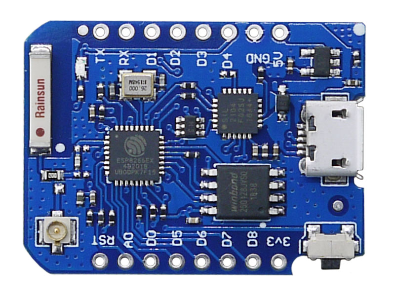 Всё необходимое для "быстрого старта" есть на самой плате WiFi D1 Mini Pro. Встроенный порт USB помогает подключаться к компьютеру напрямую при помощи обычного кабеля с разъёмом микроUSB. Благодаря ему и микрочипу преобразователя интерфейсов Silabs CP2104, на котором построено общение между USB и ESP8266, у пользователя отпадает необходимость в использовании дополнительных устройств для организации связи с платой или для внутрисхемного программирования основной микросхемы. Порт USB предоставляет открытую возможность управлять модулем, вносить в него свои приложения или загружать программное обеспечение (прошивку).