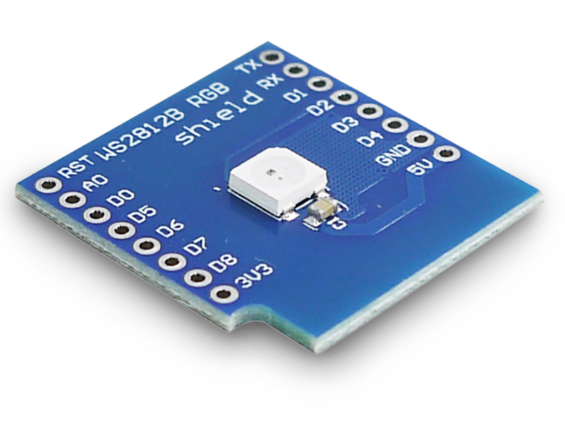 В маленьком корпусе составного светодиода, размер которого всего 5х5мм, содержится крохотный цифровой ШИМ-регулятор, управляющий яркостью свечения трёх встроенных источников света. Благодаря регулятору, светодиод может излучать любой заданный цвет, входящий в гамму из 16,7 миллионов оттенков. На программном уровне, пользователь сможет самостоятельно определять цвет для отображения световой информации о любом событии, происходящим с каждым элементом WeMos-конструкции.