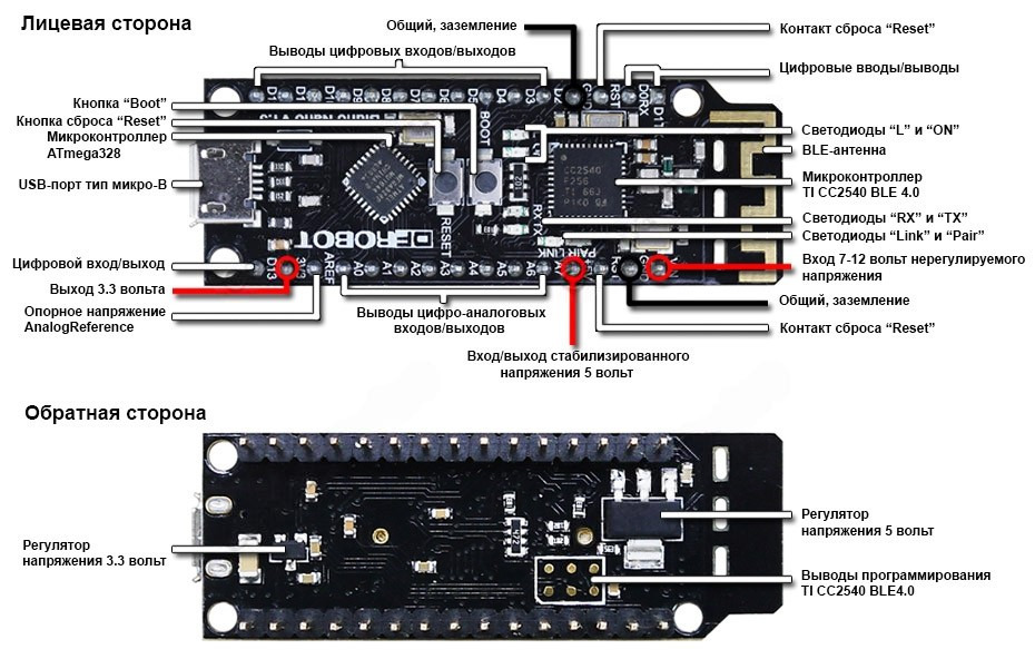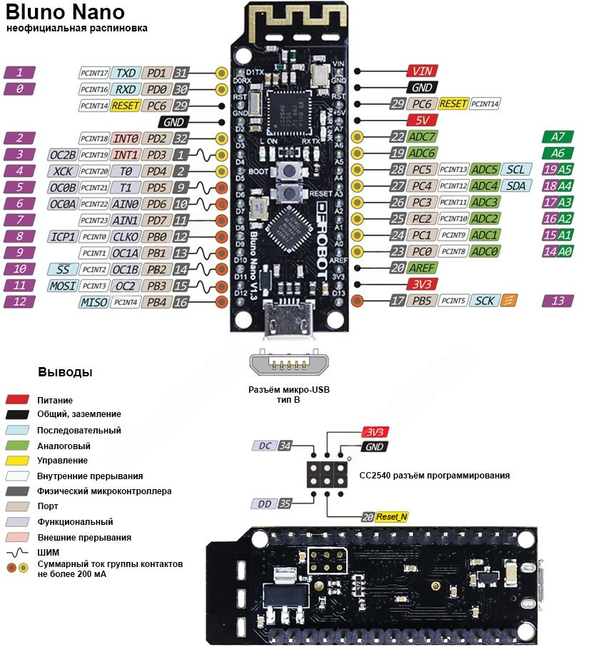 Распиновка и обозначение выводов Bluno Nano