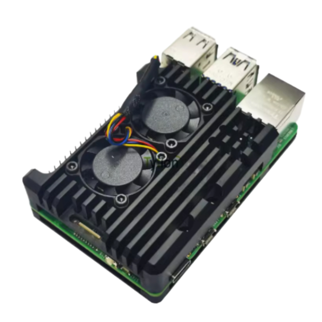 Радиатор на Raspberry Pi 5 черный матовый с ДВУМЯ вентил. 3010 4 провода с регулировкой оборотов