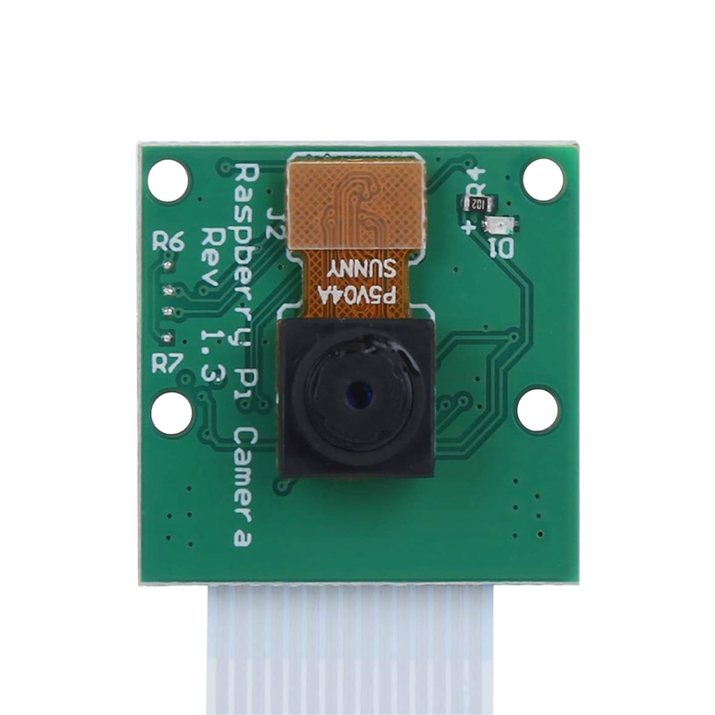 Модуль с камерой Raspberry Pi Camera Board v1.3 основан на светочувствительной матрице OV5647 с установленным поверх фильтром лучей в инфракрасном диапазоне. Сенсор OV5647 имеет встроенный процессор, отвечающий за функции управления экспозицией, баланса белого цвета, автокалибровки уровня чёрного цвета, коррекции дефективных пикселей, регулировки частоты кадров, автофокусировки, обработки изображения: зеркального переворота, обрезки, наклона, и т.д. Данные изображения выводятся в формате 8-/10-бит RGB RAW. Максимальное разрешение снимка/кадра составляет 2592 х 1944 графических точек (пикселей). Видеосъёмка в стандарте FullHD осуществляется с частотой 30 к/с. Зависимость частоты кадров относительно выбранного разрешения съёмки: