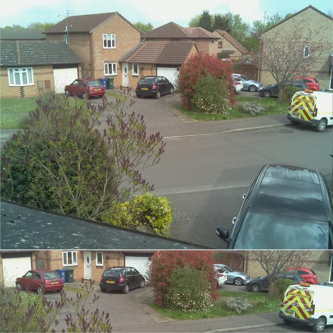 Объектив у камеры Raspberry Pi Camera Board v1.3 с фиксированным фокусом. Углы зрения оптики по горизонтали и вертикали — 54° и 41° соответственно. Дистанция автофокусировки до объекта съёмки: от 1 метра и до бесконечности. Перспектива захваченного камерой изображения наиболее близка к естественному. Пример: