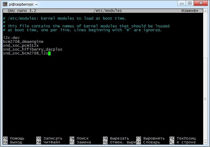 добавив в содержимое имена модулей ядра, загружаемых при запуске Raspberry Pi