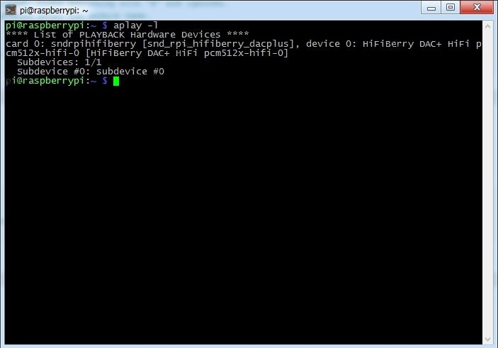 card 0: sndrpihifiberry [snd_rpi_hifiberry_dacplus], device 0: HiFiBerry DAC+ HiFi pcm512x-hifi-0