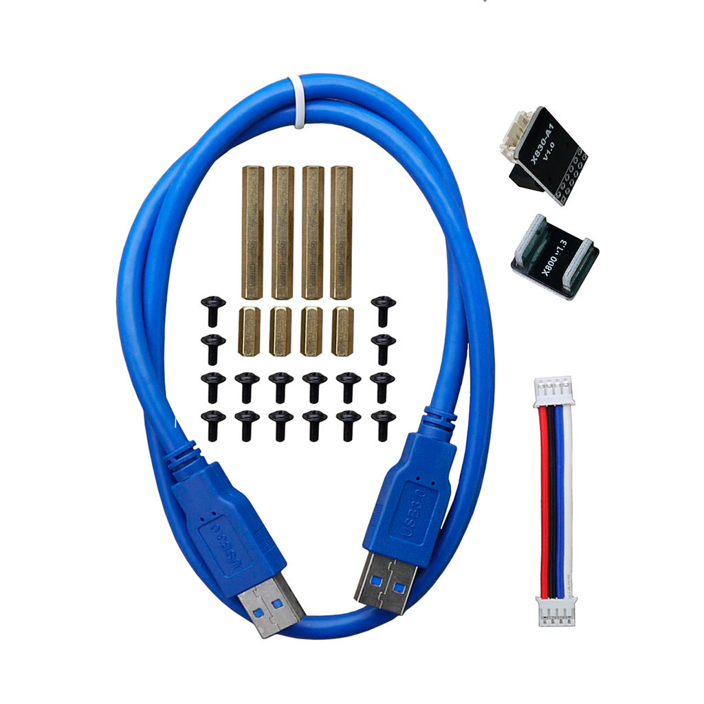 ; - Разместите и закрепите Raspberry Pi поверх стоек М2.5х12мм. Соедините 4-контактный провод, плату подключения питания к контактам GPIO, разъём RPI модуля X830 V2.0 и Raspberry Pi как показано на картинке.