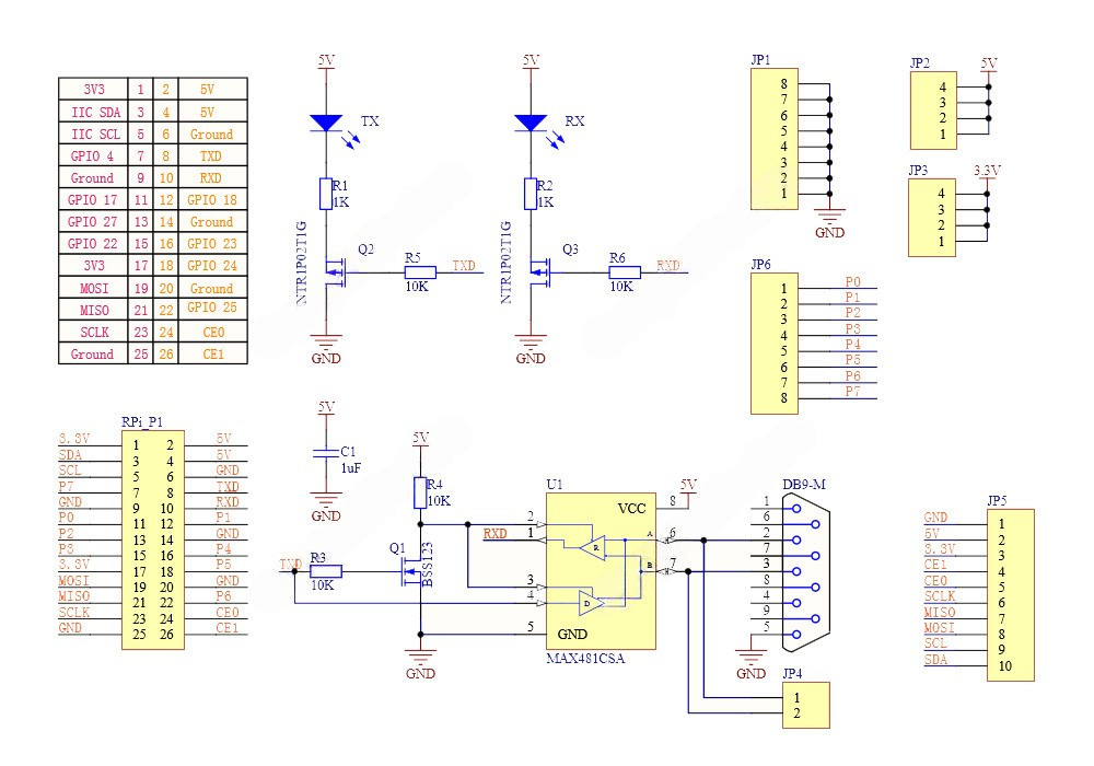 Электрическая принципиальная схема RS485/GPIO Expansion Board