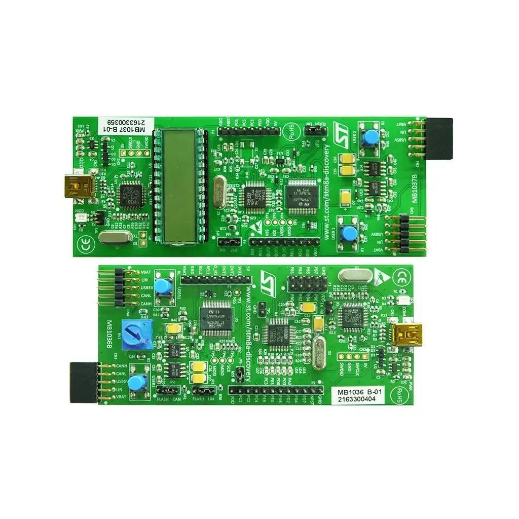 Микроконтроллер: STM8AL3L68TCY: 8 бит, 16 МГц, 32 КБ, 2 КБ, 48 выводов в корпусе LQFP и платы CAN/LIN-трансивера.