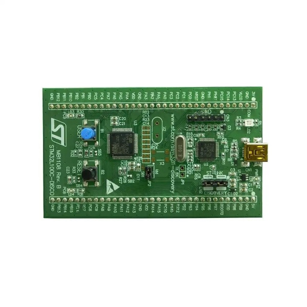 Плата разработки проектов и приложений STM32L100C-DISCO. Построена на микроконтроллере STM32L100RCT6 Cortex-M3 32МГц с 256 Кб Флеш и 16 Кб оперативной памяти, вcтроен ST-LINK/V2 программатор с переключателем режимов и разъемом SWD. Коммуникационные интерфейсы: 2хI2C, 3хUSART, 3хSPI, 2хI2S, USB2.0, LCD. Имеет две кнопки (сброс и пользовательская), 4 светодиодных индикатора. Поддержка 3.3 и 5 вольтовой логики. Питание 5В/USB. Размеры: 88.9х53.34мм