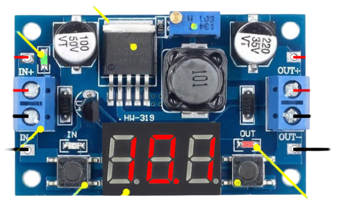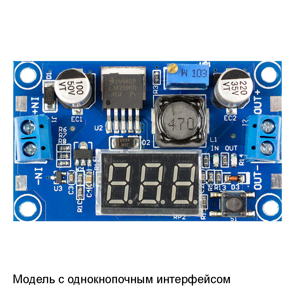 Преобразователь постоянного напряжения DC-DC на LM2596 понижающий с встроенным вольтметром, выбор напряжения - регулятором , Вх