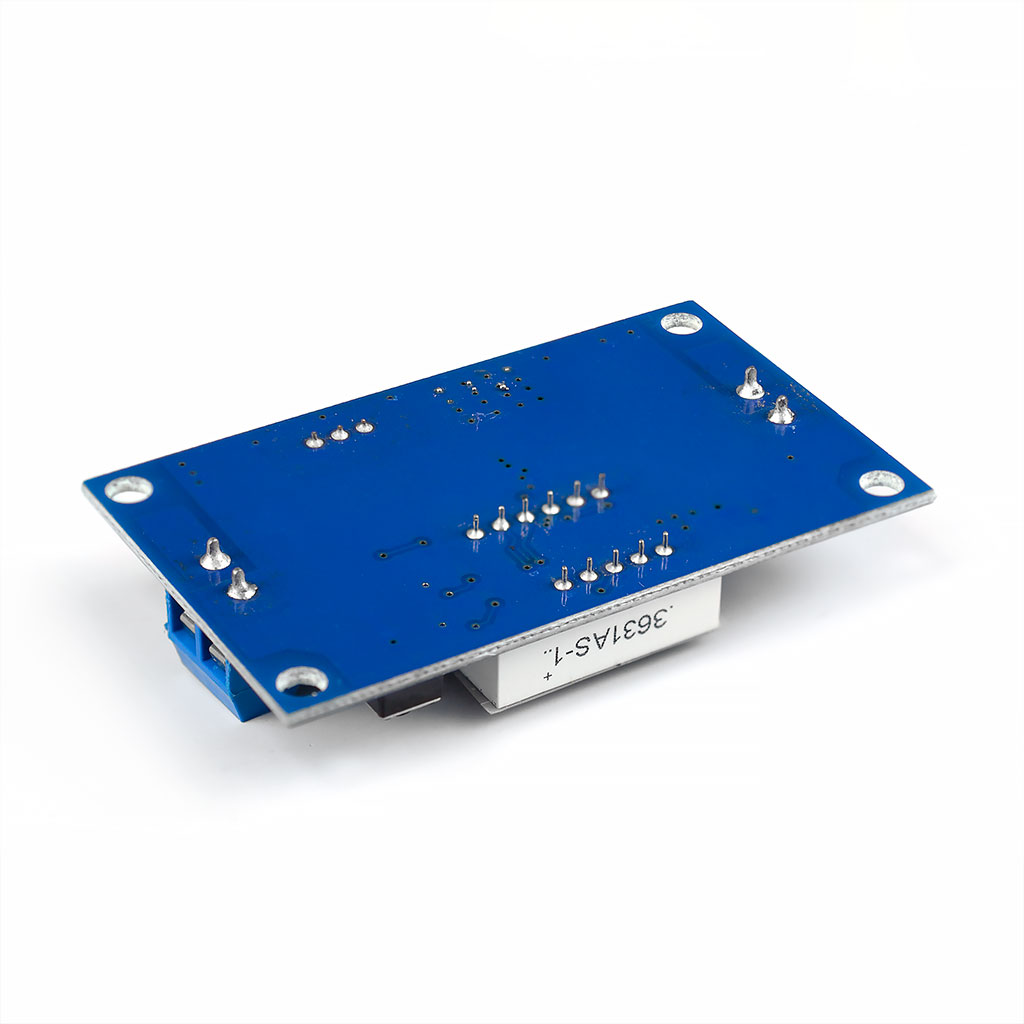 Преобразователь постоянного напряжения DC-DC на LM2596 понижающий с встроенным вольтметром, выбор напряжения - регулятором , Вх. напр. - 3,5-40 В, Напр. вых - 4-40 В, Ток - 2 А (3А с радиатором), размеры 35*55 мм, Цвет платы - СИНИЙ.
