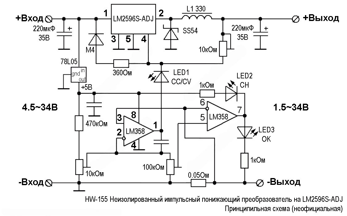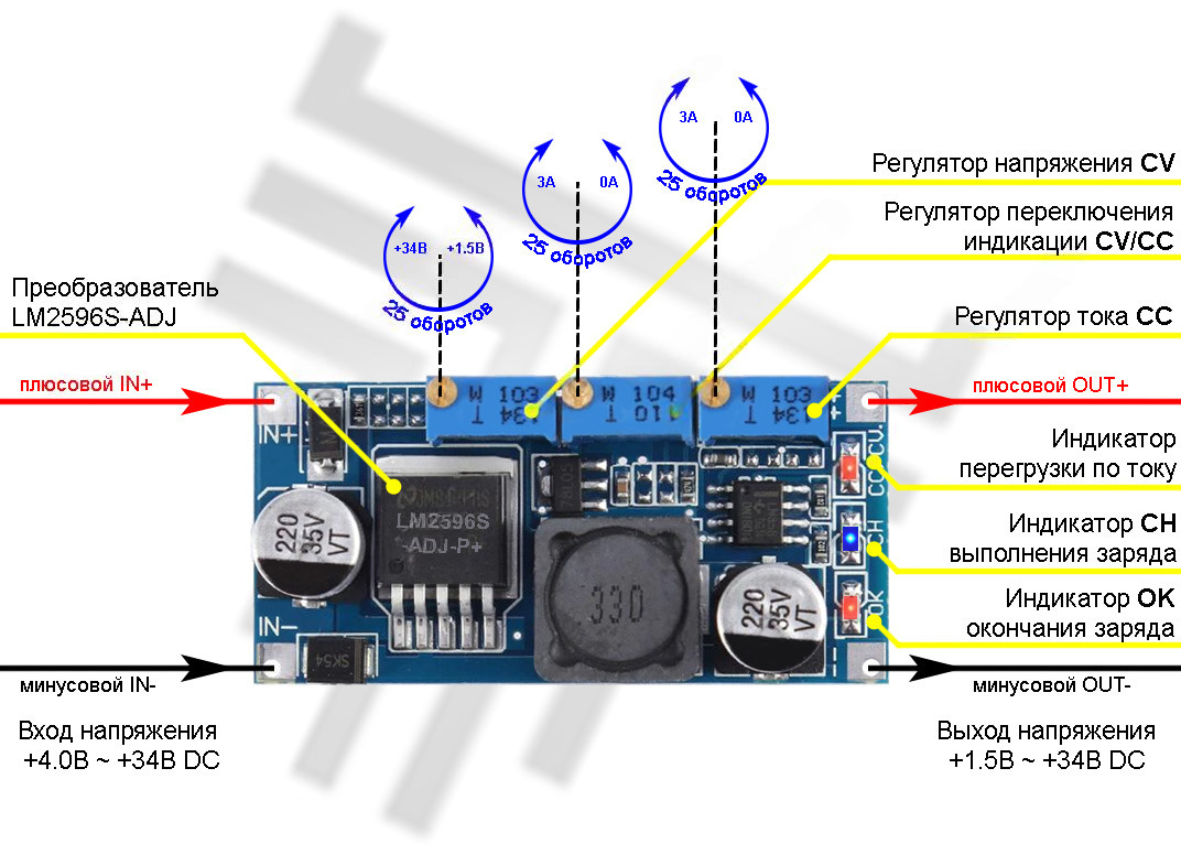 Преобразователь постоянного напряжения DC-DC на LM2596 понижающий, выбор напряжения и тока - регуляторами