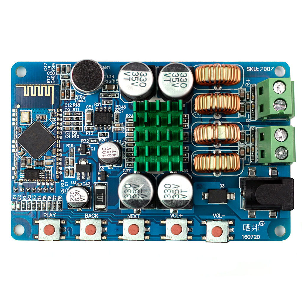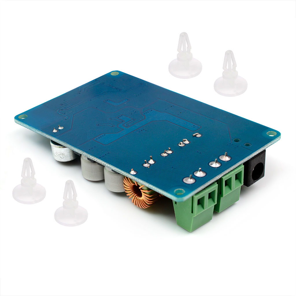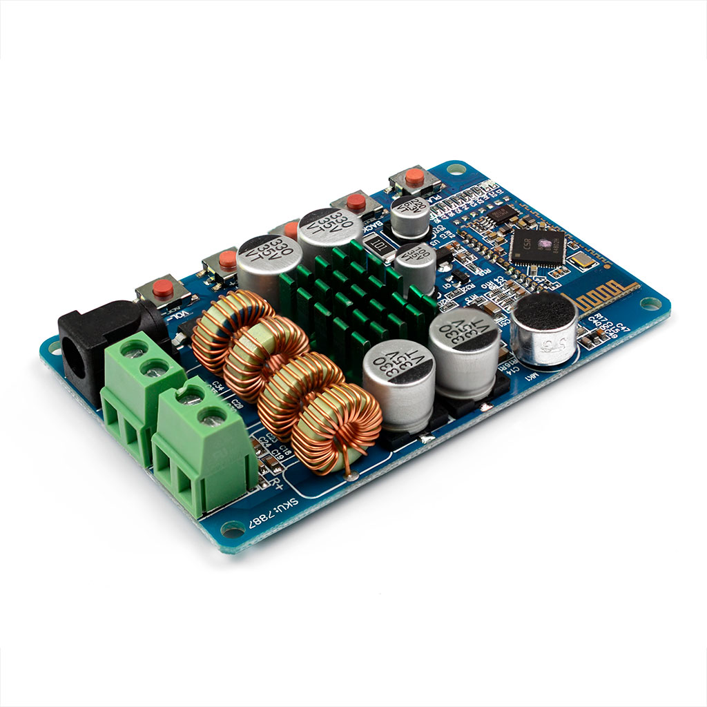 Стереоусилитель D-класса на микросхеме TPA3116, совмещен с модулем Bluetooth 4.0 для возможности беспроводной передачи аудио. Усилитель снабжен кнопками, которые позволяют управлять источником аудио посредством Bluetooth. Встроенный микрофон позволяет организовать двустороннюю громкую связь для телефонных звонков, например в автомобиле.