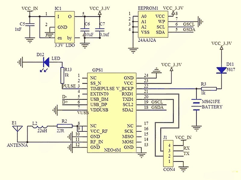 GPS модуль NEO-6M с EEPROM и керамической антенной. GY-NEO6MV2 оснащен flash-памятью для настроек, конвертером логических уровней и стабилизатор на 3,3 В. Протокол NMEA 0183. Размеры модуля: 23*30 мм, Размеры антенны: 12*12 мм