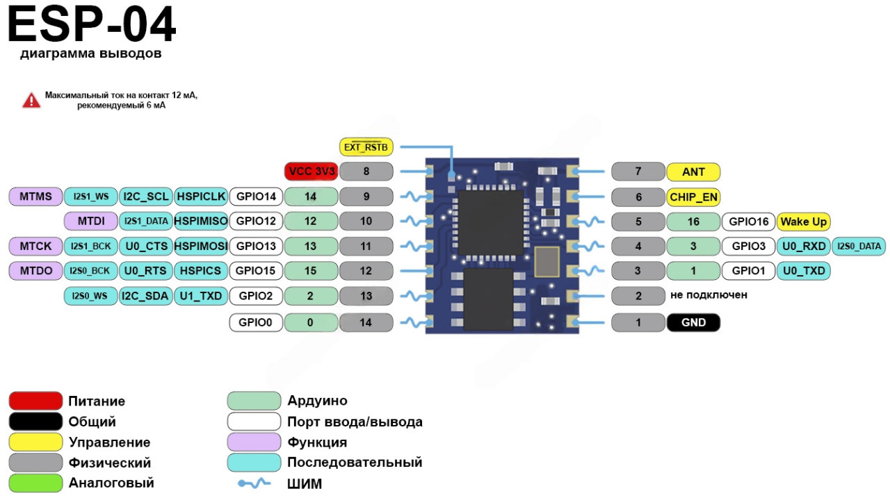 Радиопередатчик ESP-04 ESP8266 Serial WiFi. Шаг между контактами 2,0мм.