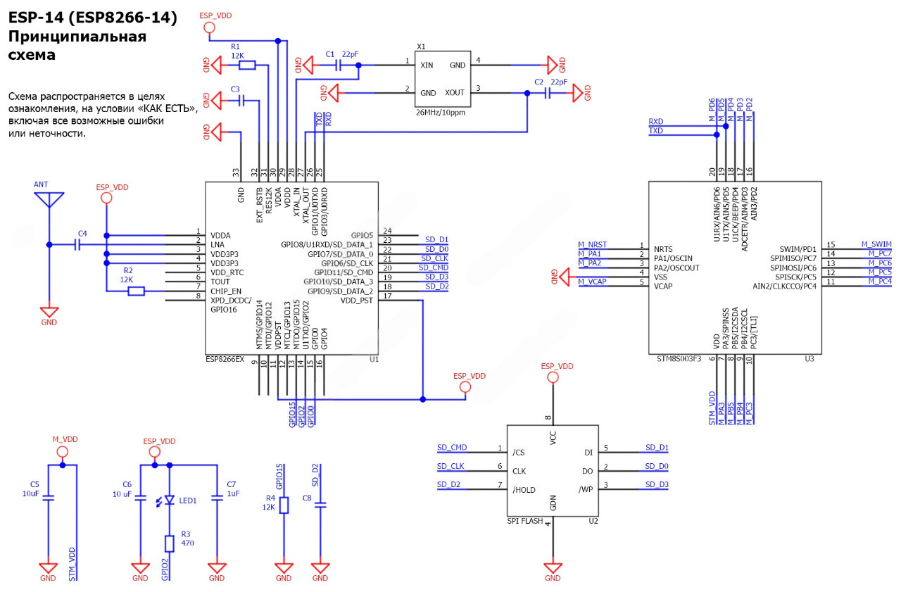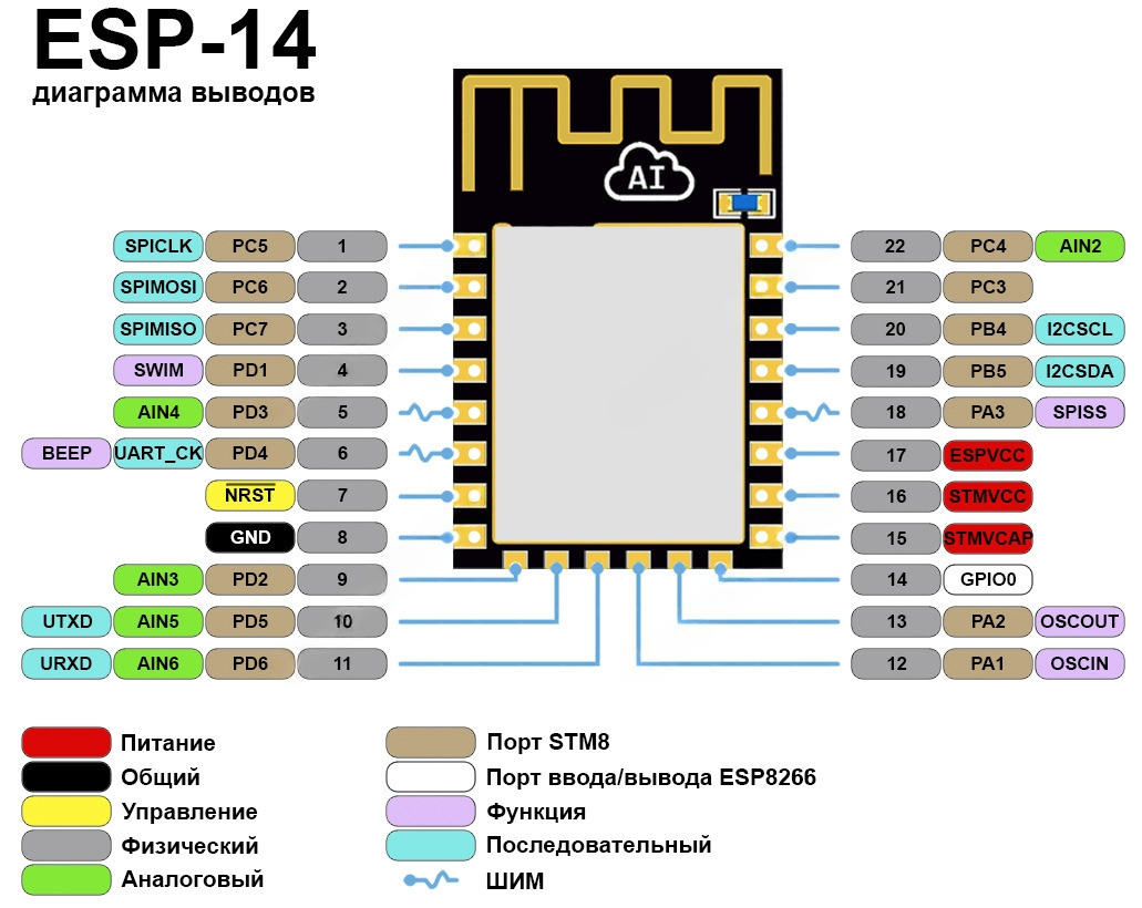 Радиопередатчик ESP-14 на базе ESP8266 с встроенным процессором STM8