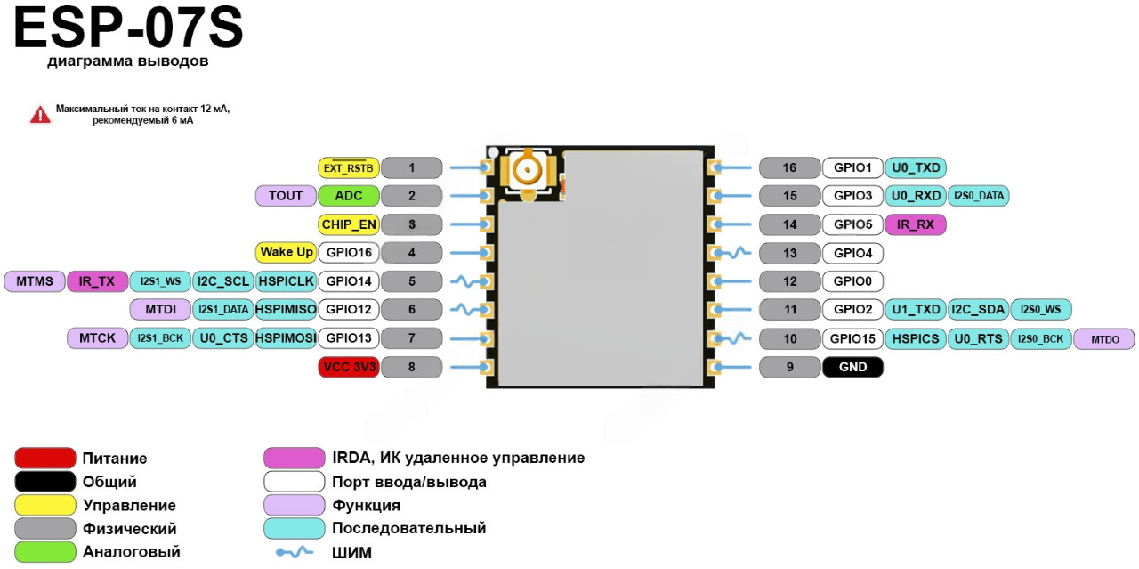 Радиопередатчик ESP-07S ESP8266 Serial WiFi