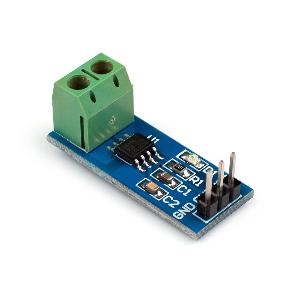 Модуль датчика тока ACS712 20A разработан на базе микросхемы ACS712, включающей в себя датчик Холла, обладающий высокой точностью. Диапазон измерения тока составляет от 0 до 20 ампер. Модуль возможно подключать к платам Raspberry Pi или Arduino, а также к любым платформам на AVR микроконтроллерах, благодаря встроенному резистивному делителю.
