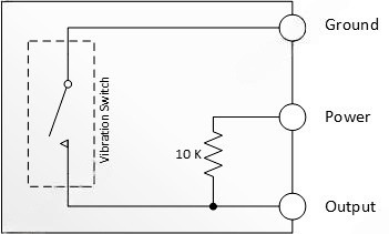 На модуле KY-002 установлен датчик механического воздействия серии SW-18015P. Конструктивно он представляет собой металлический стержень, вокруг которого расположена пружина. При сотрясении датчика пружина соприкасается со стержнем и цепь замыкается.