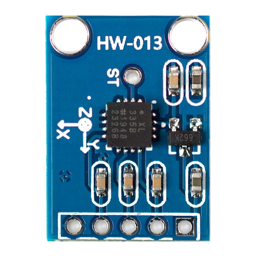 Акселерометр аналоговый GY-61 3-х осевой на чипе ADXL335. Аналоговые выходы осей X, Y, Z. Питание: 3-5 В, Размеры: 21*16 мм.