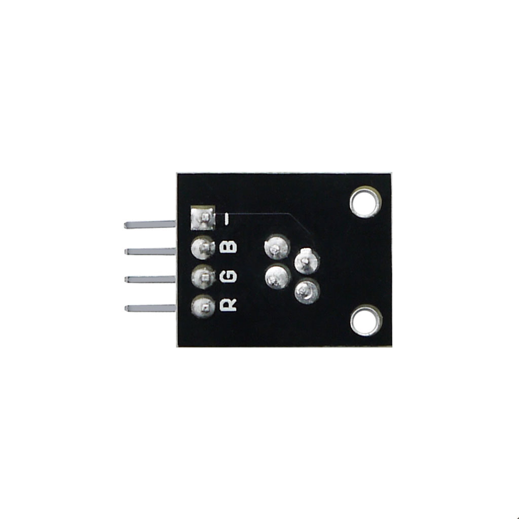 Трехцветный RGB светодиодный модуль KY-016 для Ардуино выдаёт не только три цвета, но и может светиться всеми цветами радуги. Этого можно достичь, меняя интенсивность света на ногах, отвечающих за три основных цвета. Светодиод имеет общий катод. Ограничительные резисторы установлены на плате.