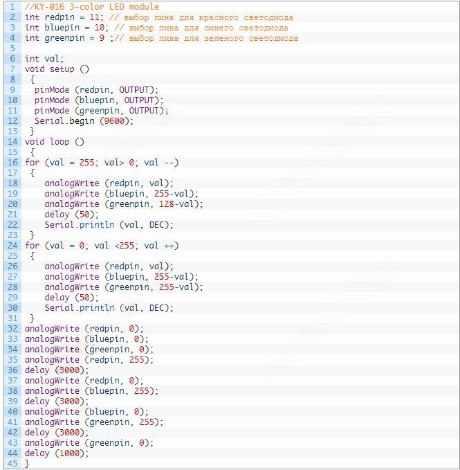Пример скетч кода для KY-016 и Arduino: