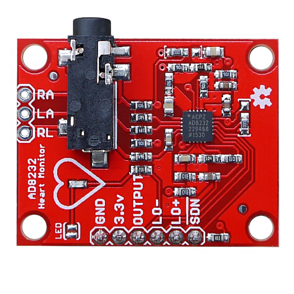 Датчик предназначен для получения, усиления и фильтрации слабых биопотенциальных сигналов в условиях сильных помех. AD8232 включает в себя двухполюсный фильтр высоких частот и нескоммутированный операционный усилитель, который позволяет использовать технологию многополюсной низкочастотной фильтрации для удаления шума линии и других помех. Благодаря этому датчик можно напрямую подключать к осциллографу через контакт OUTPUT.