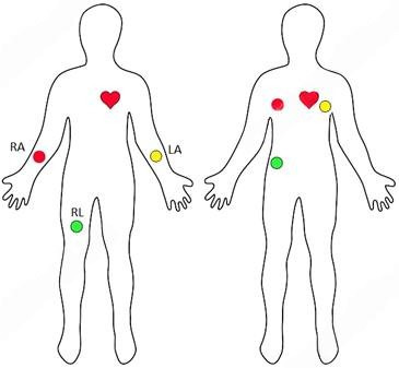 Для снятия ЭКГ электроды крепятся на теле согласно рисунку: