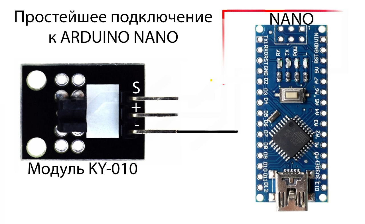 Давайте попробуем подключить KY-010 к Ардуино НАНО проверить всё на деле.