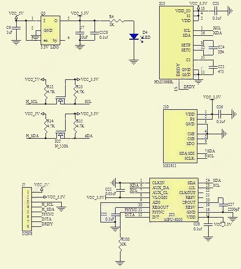 Трехосевой гироскоп, акселерометр, компас, с датчиком давления GY-86 основан на чипах MPU6050 + HMC5883L + MS5611, 10 степеней свободы, Протокол обмена: I2C, Питание: 3-5 В