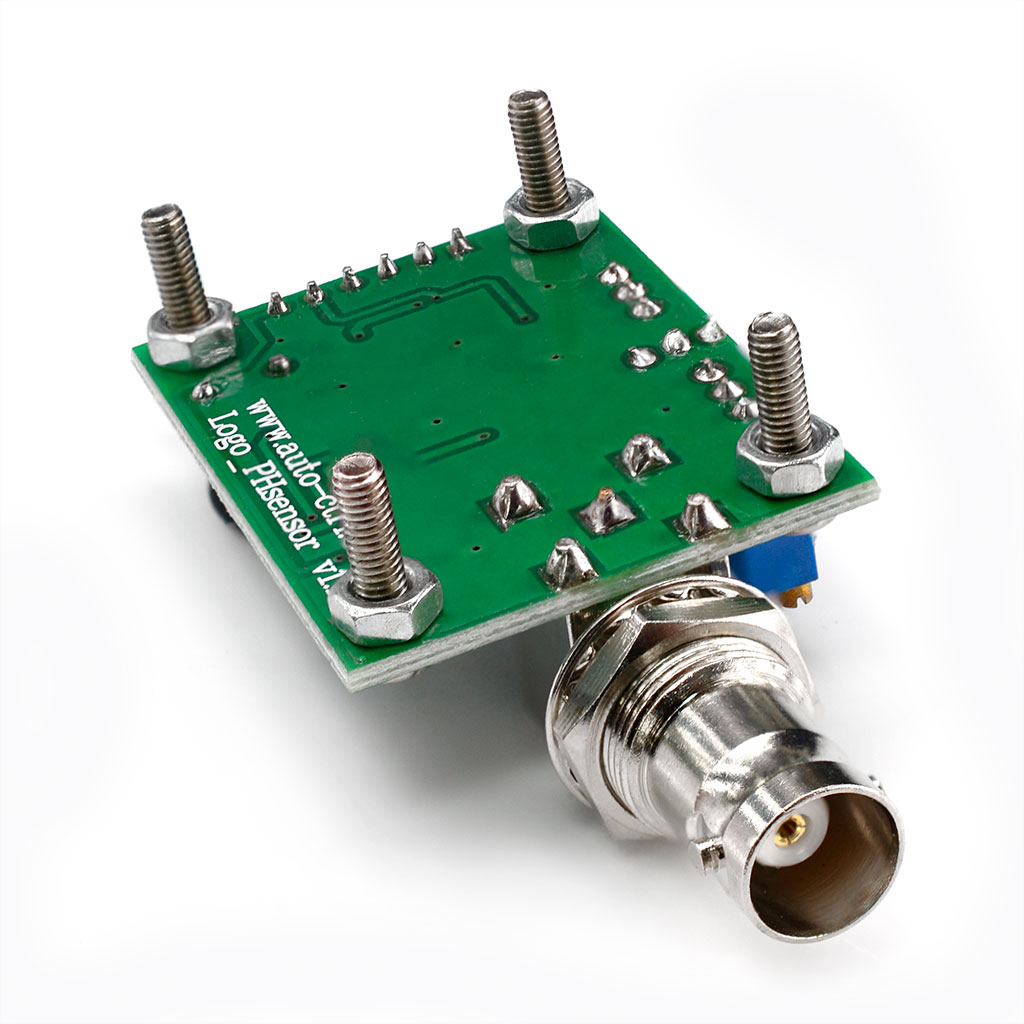На плате расположены два подстроечных резистора, для установки нуля рН-сенсора и для настройки компаратора.
