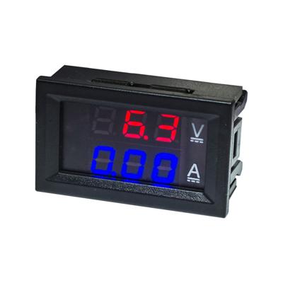 Вольт-амперметр цифровой 100В 10А индикация Красный+Синий (Шунт встроен) YB27VA, точность напряжения: 0,1В, точность тока: 0,1А, питание: 4,5-30В, размеры: 48*28*21 мм