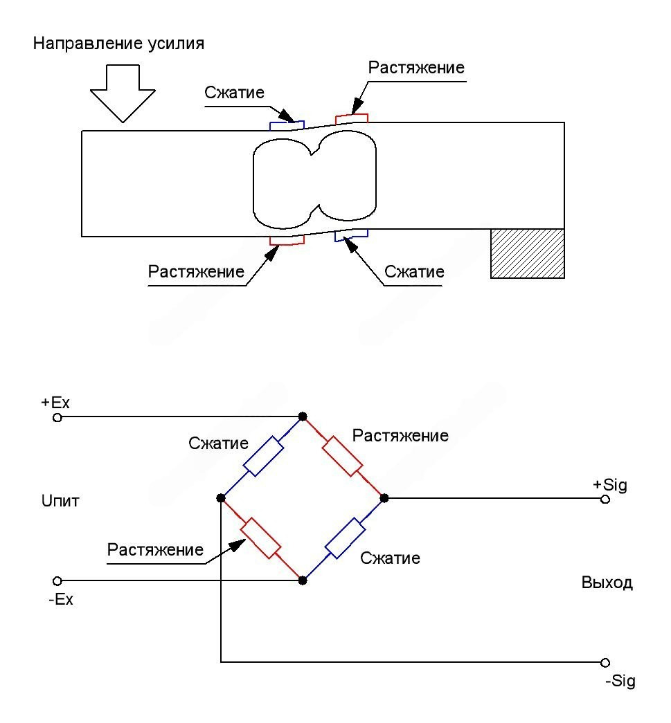 АЦП HX711 предназначен для работы с тензорезистивными датчиками веса, которые представляют собой мост Уитстона, состоящий и четырех тензо-резисторов, два из которых работают на растяжение и два на сжатие.