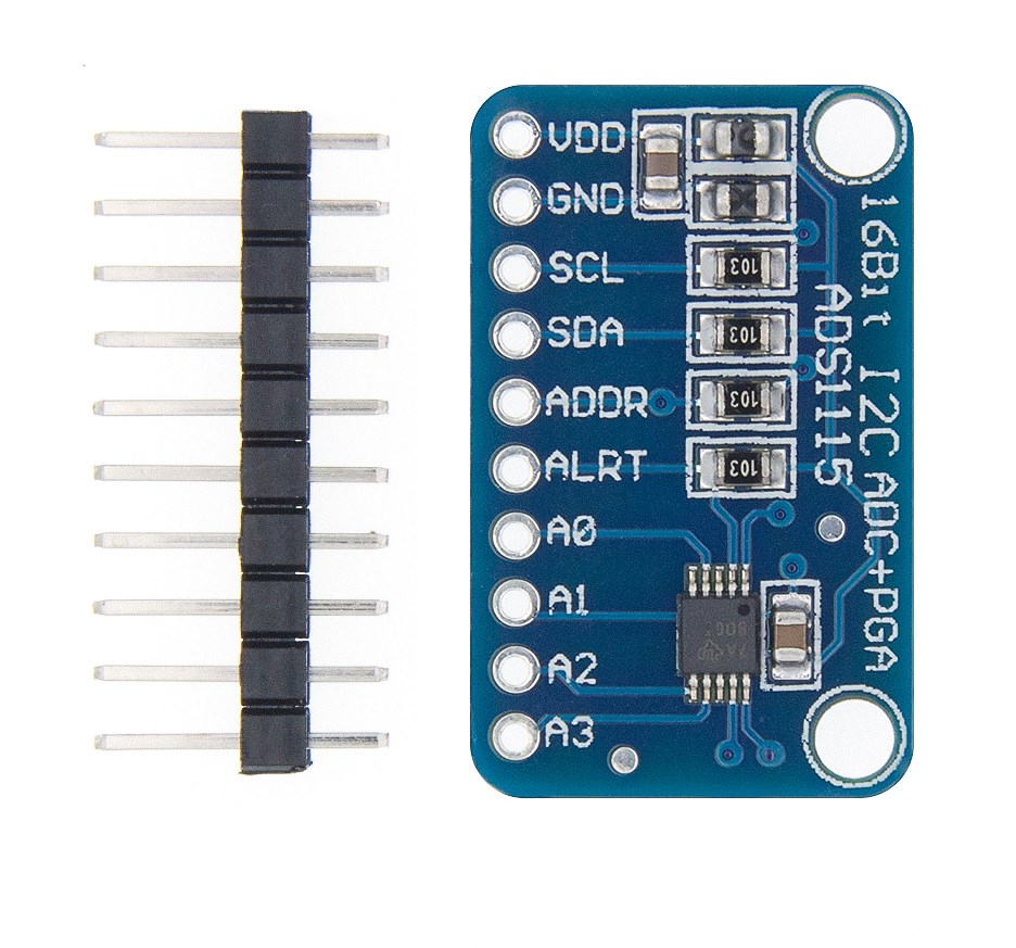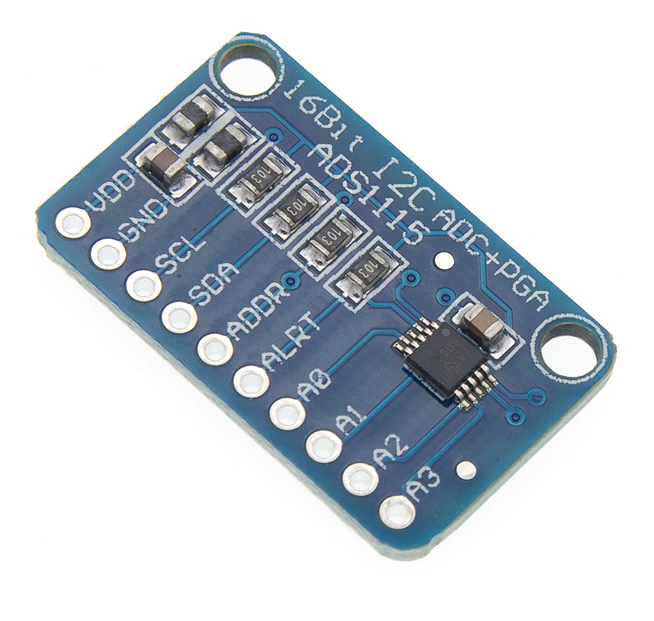 Цифроаналоговый преобразователь ADS1115 AD/DA конвертер. Интерфейс обмена: I2C, разрешение: 16 бит, 4 аналоговых входа, встроен усилитель сигнала для измерения слабых значений. Особо низкое потребление: 150 мкА.