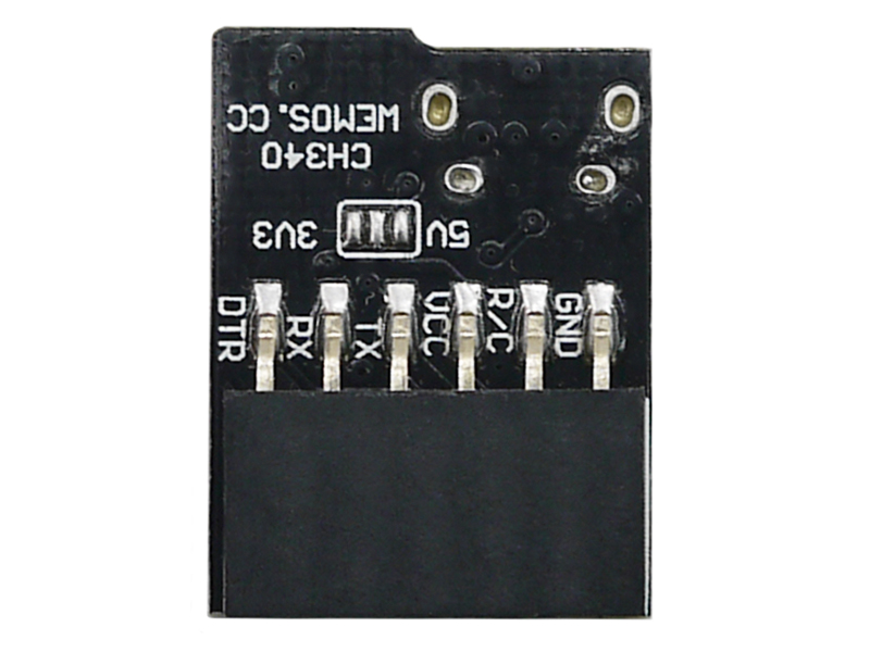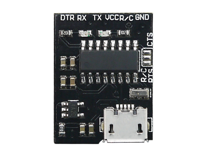 Преобразователь уровней USB в TTL на чипе CH340G. Питание: 5В/USB. Макс.ток: 500мА. Напряжение на выходе TTL: 3.3В (подходит для ESP8266, Arduino Pro Mini и других плат с 3.3В логикой). Разъем TTL: 6 контактнов. Размеры: 25х20мм.