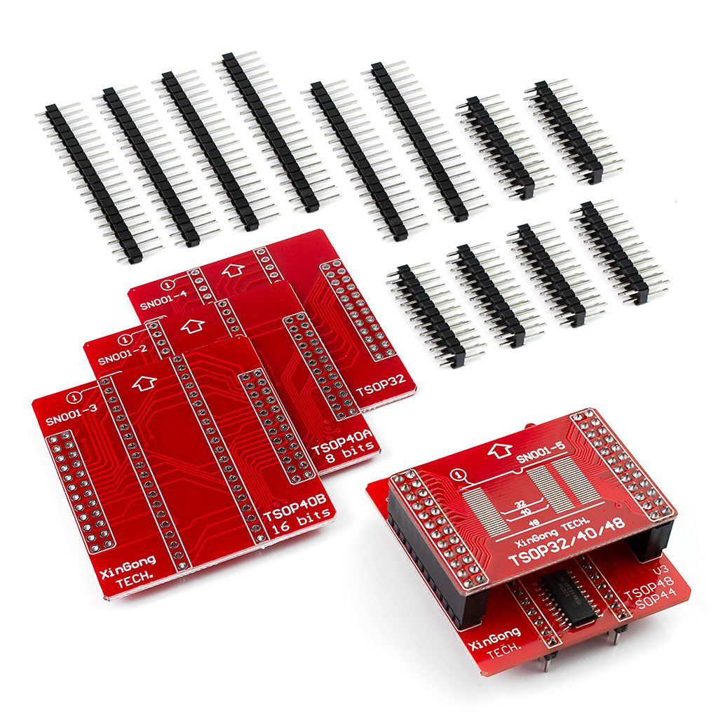 Набор из 6 переходников на гнезда TSOP32 TSOP40 TSOP48 для универсального программатора TL866A /TL866CS. В комплекте - TSOP40(A) переходник 8бит, TSOP40(B) переходник 16бит, TSOP32 переходник, TSOP48/42 переходник, TSOP32/40/48 переходник для поверхностно